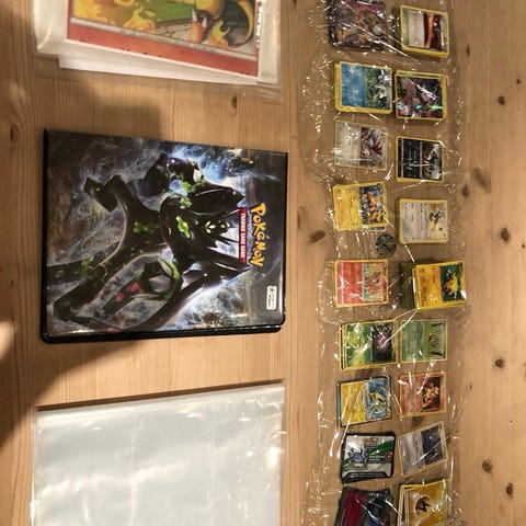 Pokémon samling kortspill sett med blikkbokser, spillematte og tilbehør