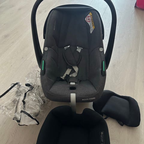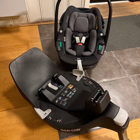 Babysete for nyfødte- ca ett år. Maxi cosy med isofix. Pent brukt (har hatt et sete i hver bil) og selvsagt ingen skader. Den har elektrisk varslingsfunksjon og sier ifra tydelig hvis isofix, sete eller støtte blir satt i feil.