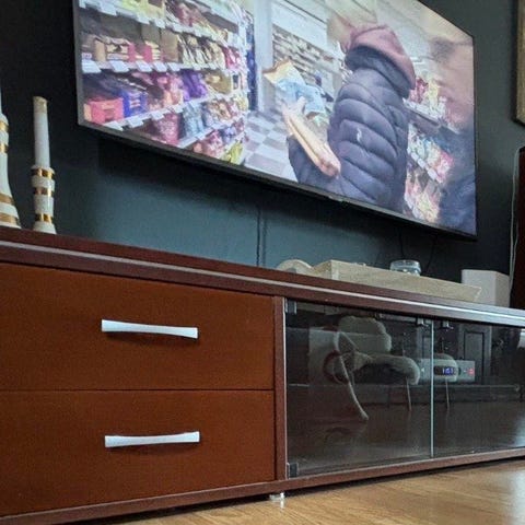 Lite skader - ene kanten på TV-benk som har fått et pittelite tøft møte med livet ;) Har ikkje lagt merke til det før eg sjekket over nå ved salg.