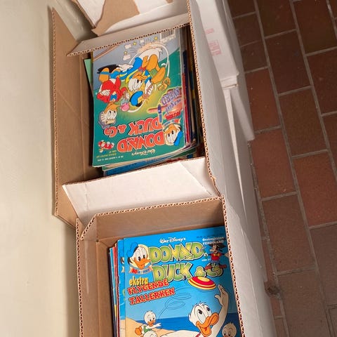 Donald duck pocketbøker. Har 3 esker. 22 stk kr 150 + frakt 69. 219 med frakt sporingnr
