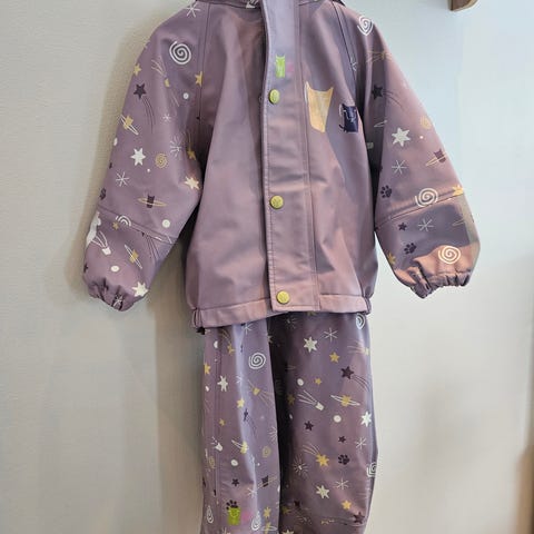 Selger et nydelig 2-delt regnsett fra Kattnakken i størrelse 92.