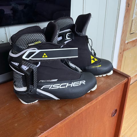 Fischer RC3 Combi langrennsstøvel i svart med gule detaljer. Modellen er en kombistøvel beregnet for både klassisk og skøyting, med ankelstøtte og strammestrikk/borrelås over vristen for bedre stabilitet. Overdelen har glidelås som dekker snøringen og beskytter mot snø og fukt. Sålen er tilpasset moderne langrennsbindinger i kombisegmentet. Passer til bruk i preparerte langrennsløyper der det ønskes støtte til begge teknikker.
