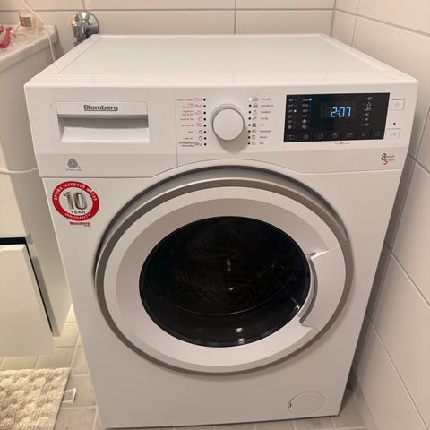 Blomberg RWD3841W2 vaskemaskin er en frontmatet modell i hvit utførelse. Maskinen har en kapasitet på 8 kg vask og 5 kg tørk (kombinert vask/tørk), noe som passer for små til mellomstore husholdninger.