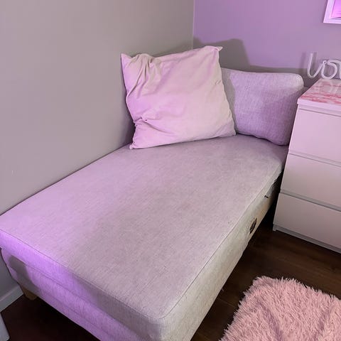 Godt brukt sjeselong, med trekk som bør skiftes.