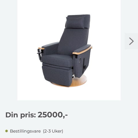 Den er flott, kjempegod å sitte i, og har fine funksjoner, men den tar større plass enn jeg trodde, og gir meg av den grunn ikke helt det jeg var ute etter da.