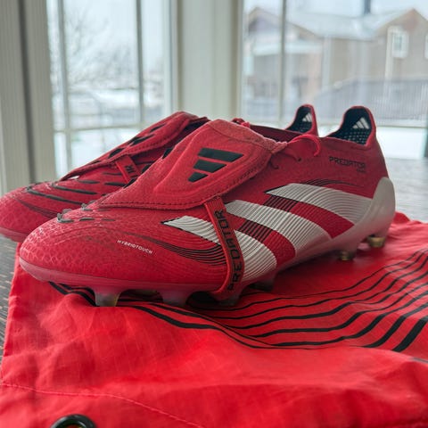 Adidas Predator Pro fotballsko str 40 kun brukt til én trening da de ikke passet. Kjøpte de i begynnelsen av februar. Fotballsko til både kunstgress og naturgress (MG). Predator Pro-modellen er designet med Strikeskin-teknologi som vil si at skoens syntetiske overdel er kledd med innovative 3D-detaljer, som bidrar til å sikre enda bedre friksjon i hvert treff med ballen. Se siste bilde for tilnærmet farge som virkeligheten. Ordinær pris 879,-