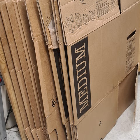 Mange flyttekasser i ulike str klar for neste jobb!
