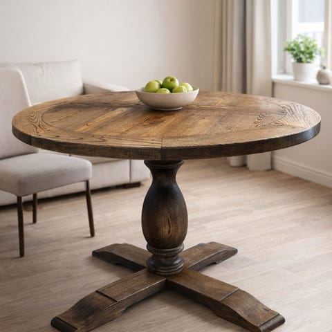 Stort spisebord med plass til mange stoler. Bordet er smørt på nytt rett før bilder, så «merkene» man ser antydning til er kun etter dette, ikke skader/slitasje.