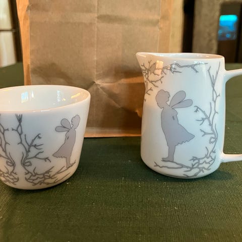 Fløtemugge & sukkerskål som nytt,selges kr 200 Hentes Brubakken /Levanger