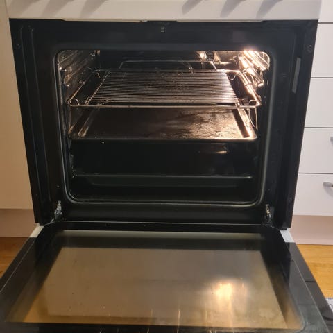Electrolux / IKEA stekeovn innbyggingsovn i rustfritt stål med sort glassfront. Ovnen er beregnet for innbygging i kjøkkeninnredning. Den har front i kombinasjon av rustfritt stål og mørkt glass, samt innvendig belysning. Inne i ovnen er det flere høyder for stekebrett og rister, og en vifte på bakveggen som gir varmluftsfunksjon. Passer til standard kjøkkenmoduler der det er plass til integrert stekeovn.