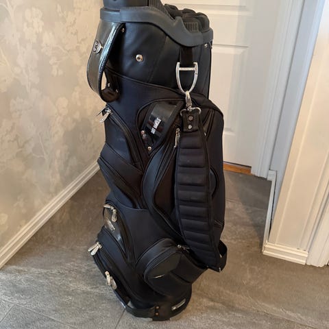 Bagen er brukt i tre sesonger og har noen bruksmerker. Den ene glidelåsen på en av to store lommer lukkes ikke. Selges derfor billig