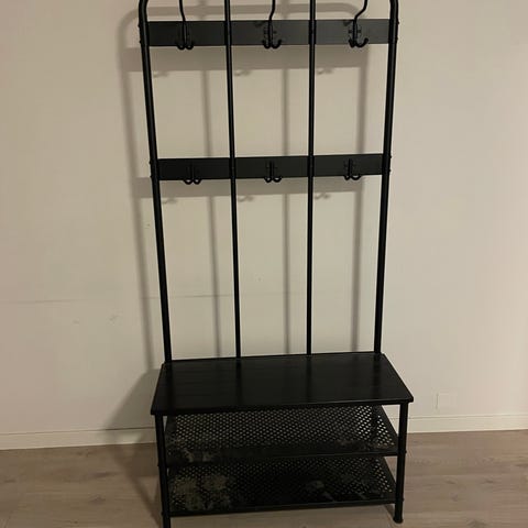 Praktisk klesstativ med hjul og skohylle. Opprinnelig fra IKEA. Gis bort pga plassmangel.
