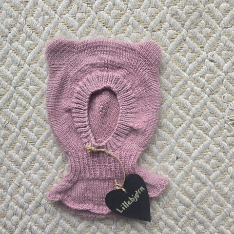 Strikket i soft silk mohair og merino garn. Som gir et mjukt og behaglig lue. Kanten rundt ansiktet er bare strikket i merino, slik at silk mohair ikke er opp mot øynene.