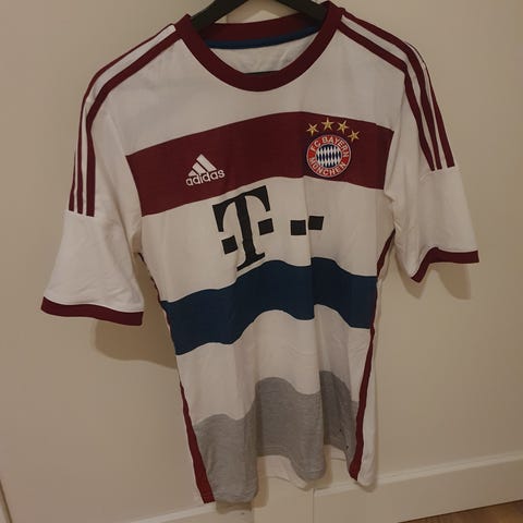 Adidas FC Bayern München Lewandowski fotballdrakt for herre i størrelse M. Drakten er rød med hvite detaljer, klubbmerke på brystet og spillertrykk med navn og nummer 9 på ryggen. Egnet til fotballspill eller som supportereffekt.