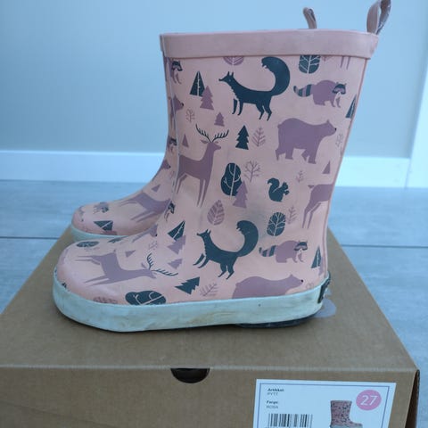 Hello Kitty fôret regnstøvler i str. 27. Generelt pent brukt, men har anmerkning, se bilde 4. Hentes I Bergen eller sendes mot at kjøper betaler frakt. Kan sende med Postnord for 69kr. Se gjerne flere plagg for å spare på frakten.