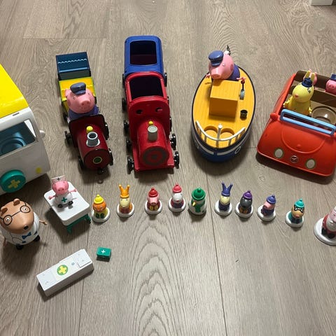 En rekke sett med Peppa gris sett. Mye moro lek.