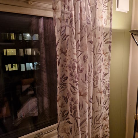 Gardinen har rynkebånd øverst for oppheng på skinne eller stang med kroker. 4gardiner i lengden* 140*160cm