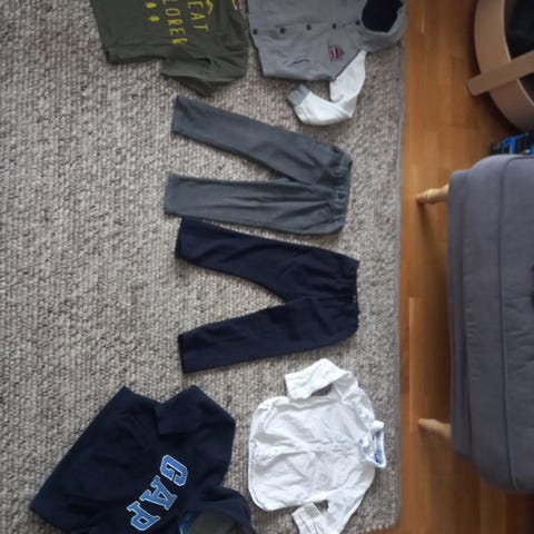 Selger klespakken i str 104-110. Godt brukt, men mye brukt igjen og derfor selges veldig billig. Perfekt som barnehageklær. Kommer fra dyr-og-roykfritt hjem.
