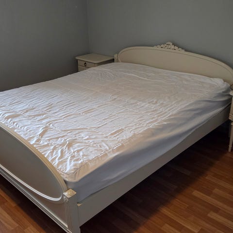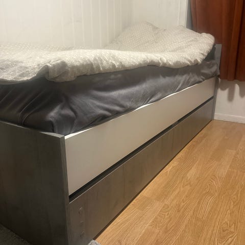 2 år gammel , dobbeltseng selges, med 2 madrasser og overmadrass. Sengen er kun brukt som gjesteseng. Må hentes i Fredrikstad. Er demontert.