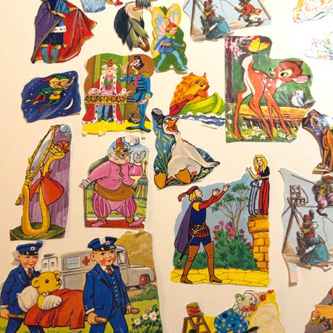 Glansbildet med Mikke Mus nederst til høyre på bilde 1 er str 8 x 9 cm.