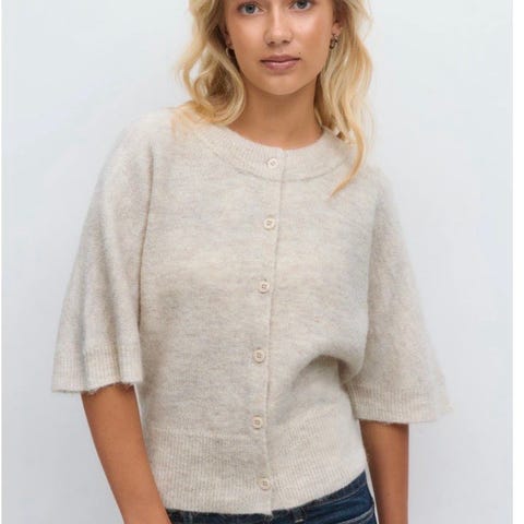 Veldig fin genser, og er brukt en gang. Knappene er for pynt og har ikke no bruksmerker. Selger fordi blir ikke brukt.