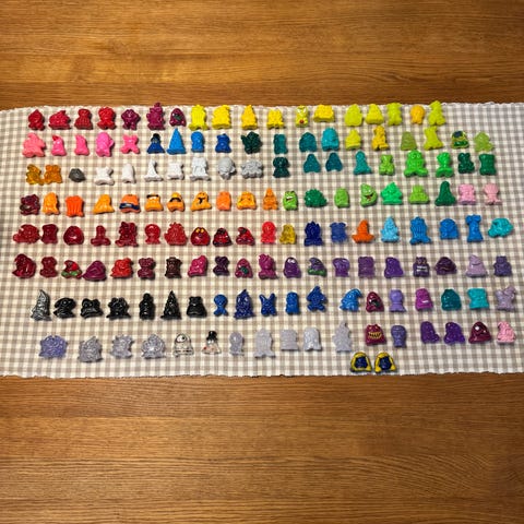 Små dekorative plastender i tre farger: rød, rosa og lyserosa. Endene er ca. 2 cm lange, som vist ved linjal på bildene. Egner seg som pynt, rekvisitter, hobbyprosjekter eller til bruk i spill og aktiviteter. Selges samlet som ett parti.