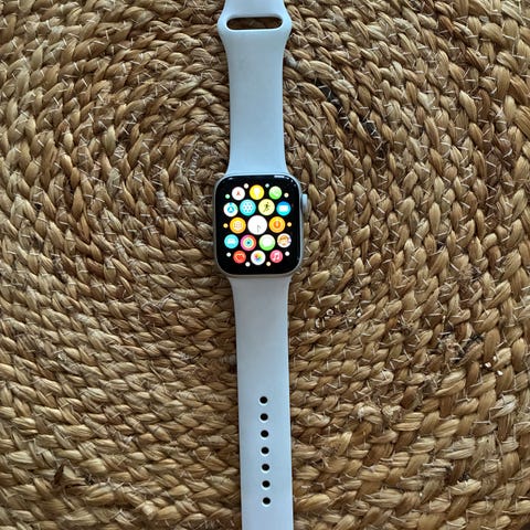 Apple smartklokke for unisex med svart reim. Klokken har rektangulær skjerm og sensorer på baksiden for måling av aktivitet og puls. Passer til daglig bruk, trening og varslinger fra mobil. Reimen er justerbar og festes med spenne. Klokken kan brukes av både menn og kvinner.