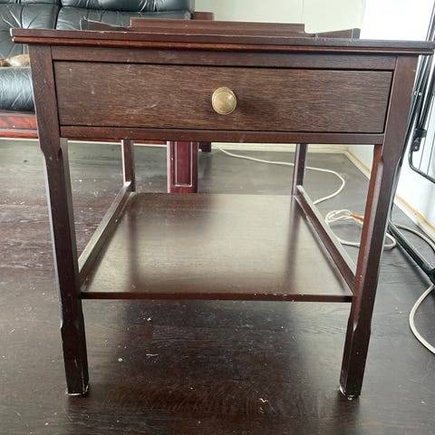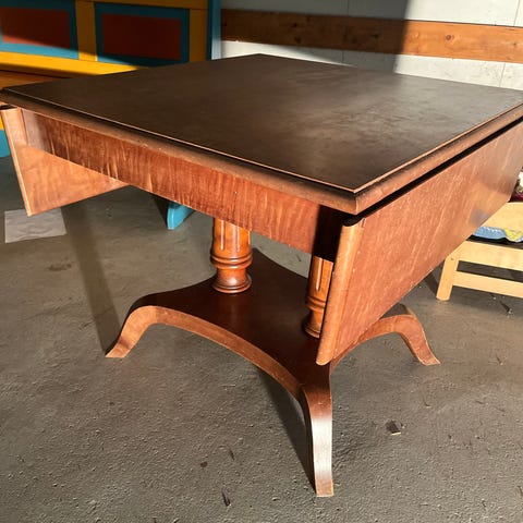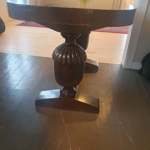 Bordet er i fin stand , lite bruksspor .Nøttebrun m smijernsdetaljer.