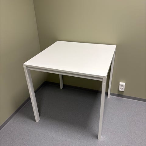 Materiale fremstår som trebasert plate med laminert eller finért overflate og metallben. Passer i kjøkken, stue, hjemmekontor eller andre rom der det er behov for et kompakt bord med nøytralt uttrykk.