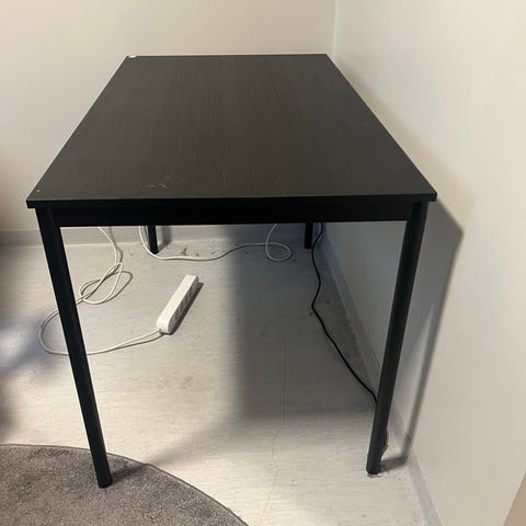 Rektangulært bord med mørkebrun bordplate og mørke ben. Bordet har en enkel, rettlinjet utforming som gjør det egnet som spisebord, arbeidsbord eller skrivebord.