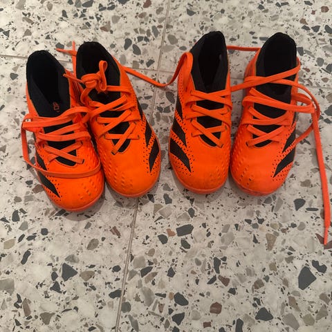 Adidas fotballsko med knotter. Én oransje og én gul modell, begge med de karakteristiske tre stripene på siden. Overdelen er i syntetisk materiale, og sålen har faste knotter som egner seg til spill på gress eller kunstgress. Skoene passer til fotballspillere som ønsker lette sko med godt grep på banen.