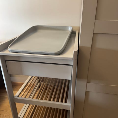 Pent brukt stellebord fra IKEA med hyller og skuff