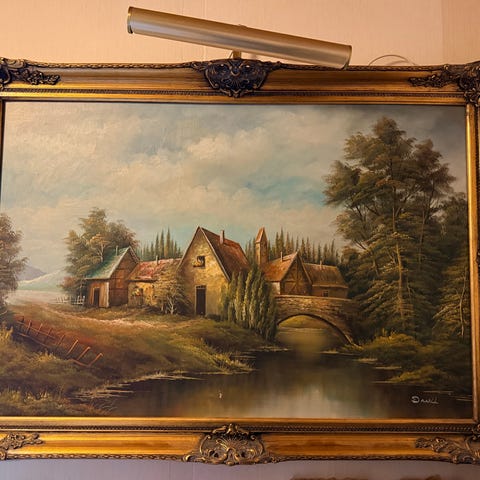 Landskap med hestekjerre. En oljemalt kopi av det berømte maleriet "The Hay Wain" av John Constable. Orginalen henger i National Gallery i London.