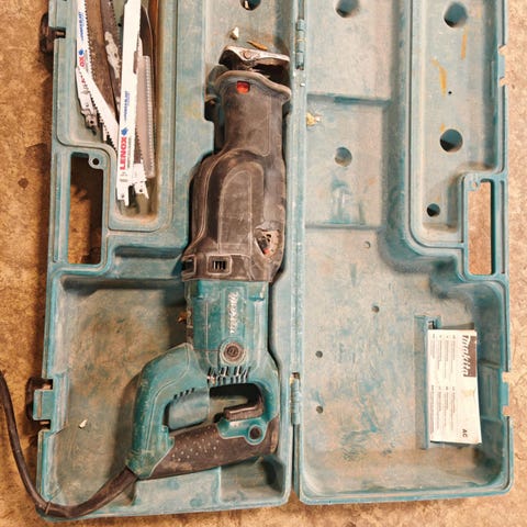Makita JR3000CT bajonettsag med kabel. Elektrisk sag for grovkutting i tre, metall og andre materialer, egnet til rivningsarbeid og tilpasningsoppgaver. Modellen har gummiert håndtak for bedre grep og justerbar såle for støtte mot arbeidsstykket. Leveres som avbildet med strømkabel, uten tilbehør som sagblad eller koffert oppgitt.