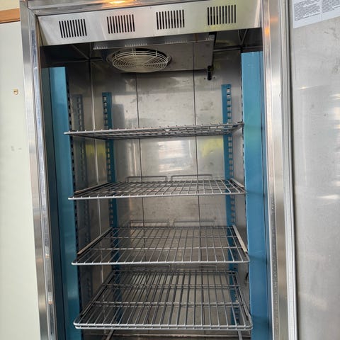 Husqvarna QR215X kjøleskap i frittstående utførelse. Kjøleskapet har et bruttovolum på 385 liter og er laget i rustfritt stål med dørhåndtak i front. Innvendig er det plass til oppbevaring av mat og drikke for husholdningsbruk. Modellen er merket med typebetegnelse QR215X på informasjonsskiltet inne i skapet. Egner seg som hovedkjøleskap på kjøkken eller som ekstra kjøleskap i bod eller kjeller. Produsert i Sverige.