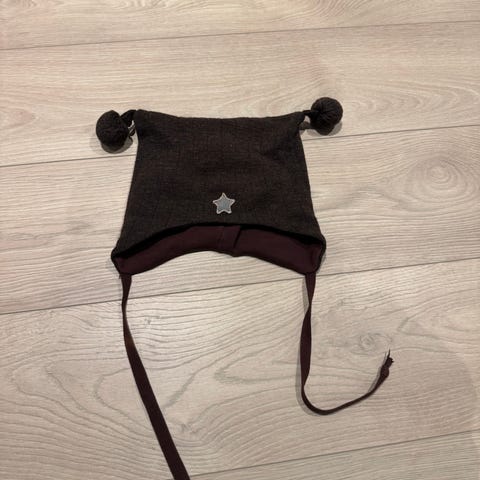 Knytelue fra Kivat str. 1 (1-2år) med ull på utsiden og bomull inni. Snorene har litt misfarging som ikke er forsøkt fjernet med sitronsåpe 😊🍋