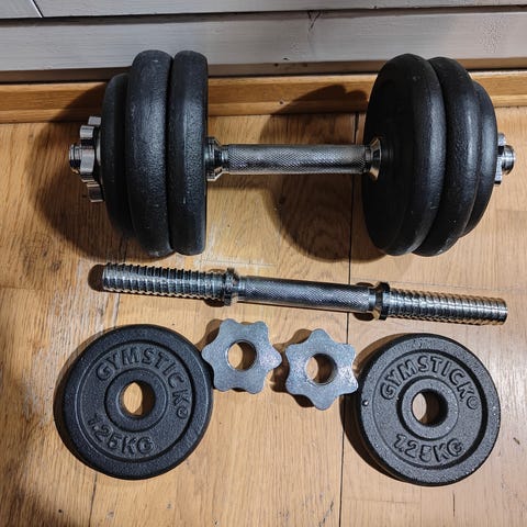 vektskiver : 4x2,25 kg og 4x 1,25 kg