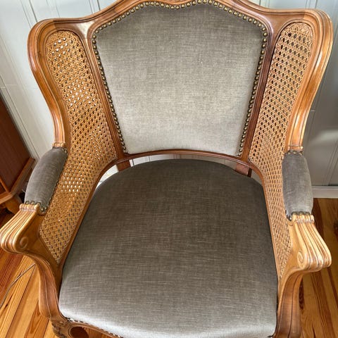 Dekorativ rottingstol i eik. God å sitte i.