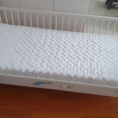 Noen bruksmerker. Sengen er nå demontert og må hentes.