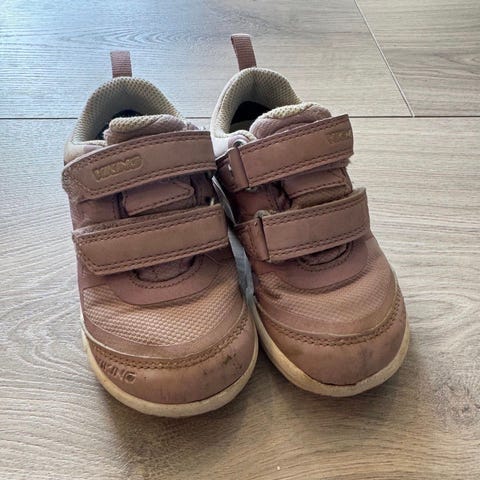 Viking Veme low barnesko i størrelse 23 for unisex. Skoene har to borrelåsstropper for enkel av- og påtaking. Overdelen er i tekstil og syntetisk materiale i rosa tone, med lys såle i gummi. Modellen har polstret kant og hælhempe bak. Egnet som hverdagssko til barnehage og utelek.