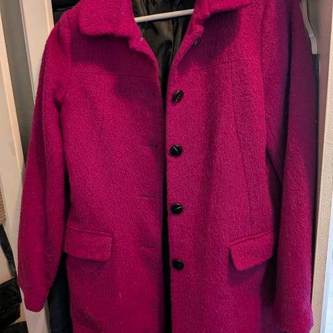 H&M kåpe for dame i størrelse M. Kåpen er grå og laget i ullmateriale. Modellen har en klassisk, rett fasong med krage og dobbeltspent lukking foran. Passer som yttertøy i kjøligere vær og kan brukes både til hverdags og mer formelle anledninger.