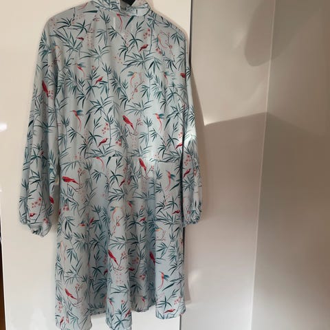 Fineste sommerkjolen fra Maud i en lekker gulgrønn farge med blomstermønster. Kjolen er lite brukt, og selges da den ikke passer lenger. Denne er like fin med et par strømpebukser og boots, som til sandaler på sommeren. Materiale: 40% viscose, 60% rayon. Kjolen er i strl 40, og normal i størrelsen. Sendes mot porto