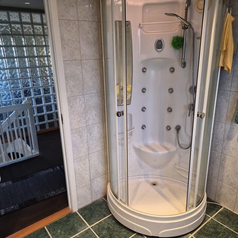 Dusjkabinettet er brukt og selges som det er. Noe gulnet i bunnen, se bilde. Ingen skader og fungerer helt fint.