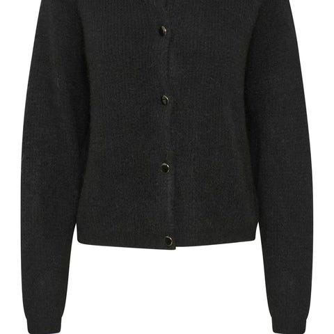 Urban Pioneers cardigan for dame i størrelse M. Cardiganen er svart og laget i 52% viskose . Modellen har V-hals, knappestolpe foran og lange ermer med ribbestrikkede mansjetter og knapper. Diskré logo er plassert nede på plagget. Passer som et lett lag over topper, skjorter eller kjoler.