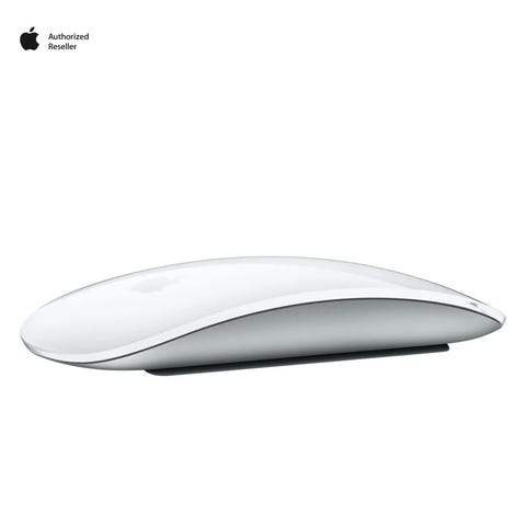 Apple Magic Mouse datamus i hvit farge. Trådløs mus med berøringsflate på toppen som støtter rulle- og sveipebevegelser. Egnet som tilleggsutstyr til Mac og andre kompatible enheter som støtter Bluetooth-tilkobling.