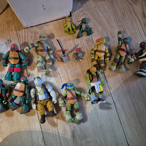 Teenage Mutant Ninja Turtles 50 Piece Track Pack lekesett med plastdeler i grønn og lilla farge. . Egnet for barn som liker byggesett og figurer fra Teenage Mutant Ninja Turtles-universet. Kan kombineres med annet kompatibelt tilbehør dersom man har det fra før. Har ikke lappen på dem. Men helt ny. Uåpnet. Selges samlet kr 250. Ellers kr 80 pr pakke. Kjører ofte til Trondheim