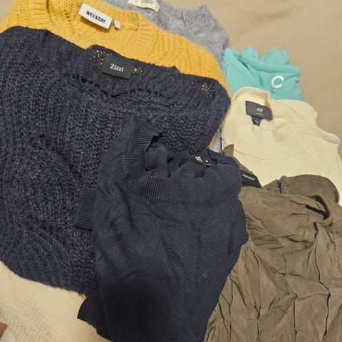 Pent brukte gensere I str S selges for 20 kr stk eller som pakke.. Ingen skader eller flekker. Dyrefritt.