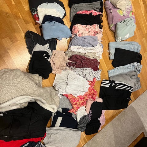 Klespakke str XS/S selges. Klærne er pent brukt uten merker eller skader. Totalt 35-40 plagg.