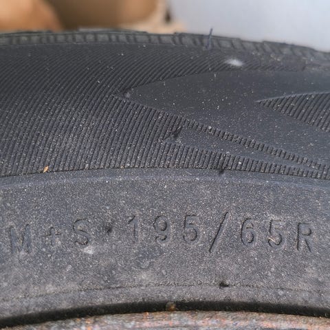 Framdekk er produsert 4821 og har ca 4-5 mm mønster (sto montert på bil når bilder ble tatt).