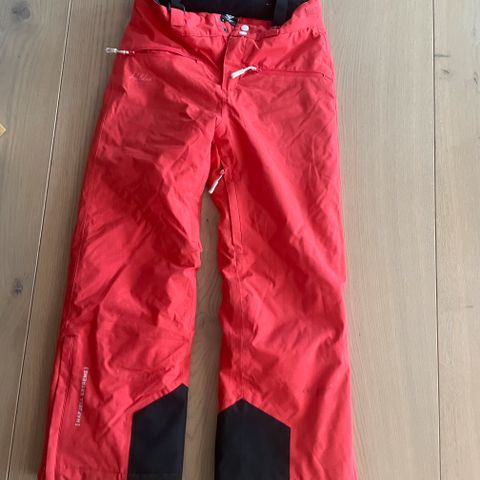 Stormberg utebukse for barn i oransje og svart. Buksen har forsterkede felt på knær og sete, justerbar linning med belte og borrelåsstramming nederst på beina. I tillegg også seler. Godt egnet til skitur og utelek på vinter.